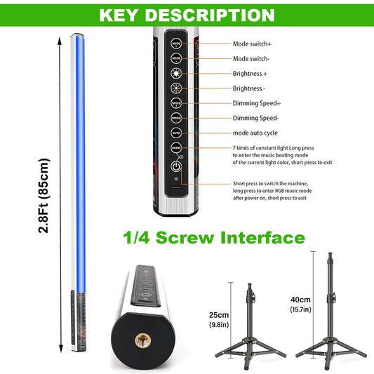 Unicozin 4 Pack RGB Tube Light Bar with Light Stand, 5200mAh Rechargeable Battery, 11-Level Brightness, 500 Lighting Effects for DJ Lighting, Dance Club and Photography Lighting
