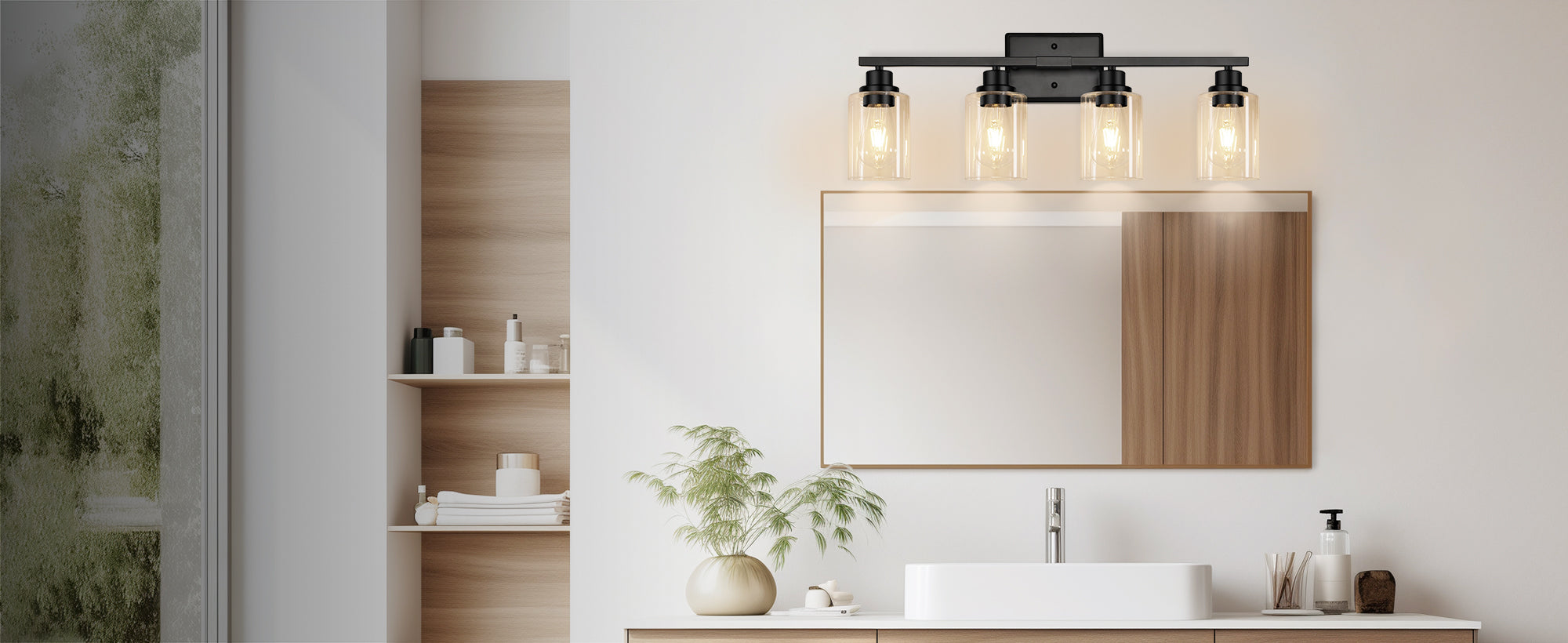 Unicozin 4 Light Vanity Lights, Black Wall Sconce Light with Clear Glass, Bathroom Light Fixtures Over Mirror, Wall Light for Living Room, Bedroom, Hallway, E26 Base (Bulbs Not Included)