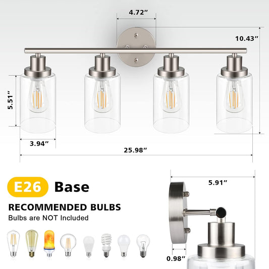 Unicozin 4 Light Vanity Lights, Bathroom Light Fixtures Over Mirror, Matt Nickel Wall Sconce Light with Clear Glass, Wall Light for Living Room, Bedroom, Hallway, E26 Base (Bulbs Not Included)
