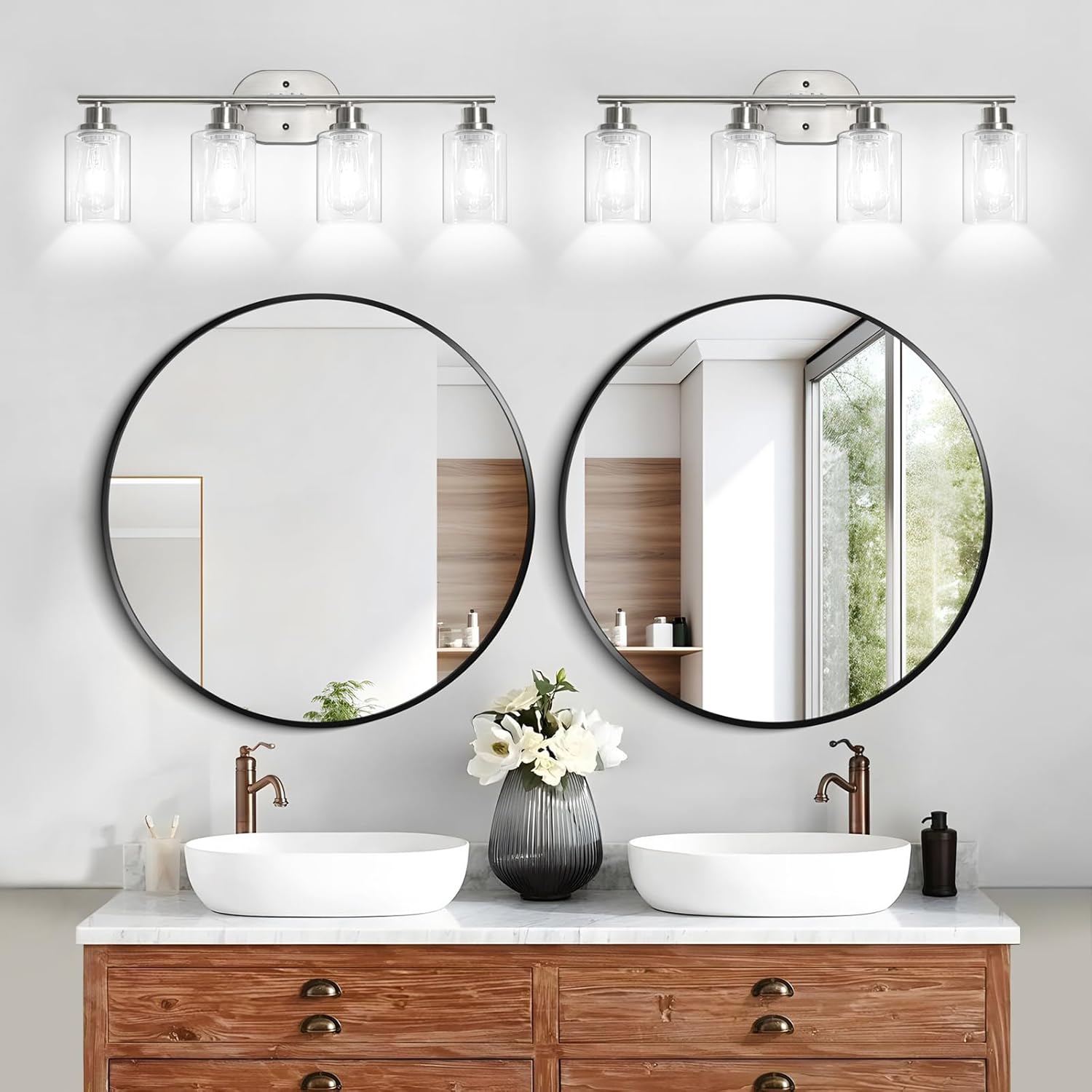 Standard E26 Base: Our vanity lights are equipped with 4 E26 heat-resistant sockets that can effectively withstand the heat generated by long-term bulb use. Max power of 60 W. It is compatible with various types of bulbs, including incandescent, LED, and CFL, among others. (Note: bulbs are not included.)