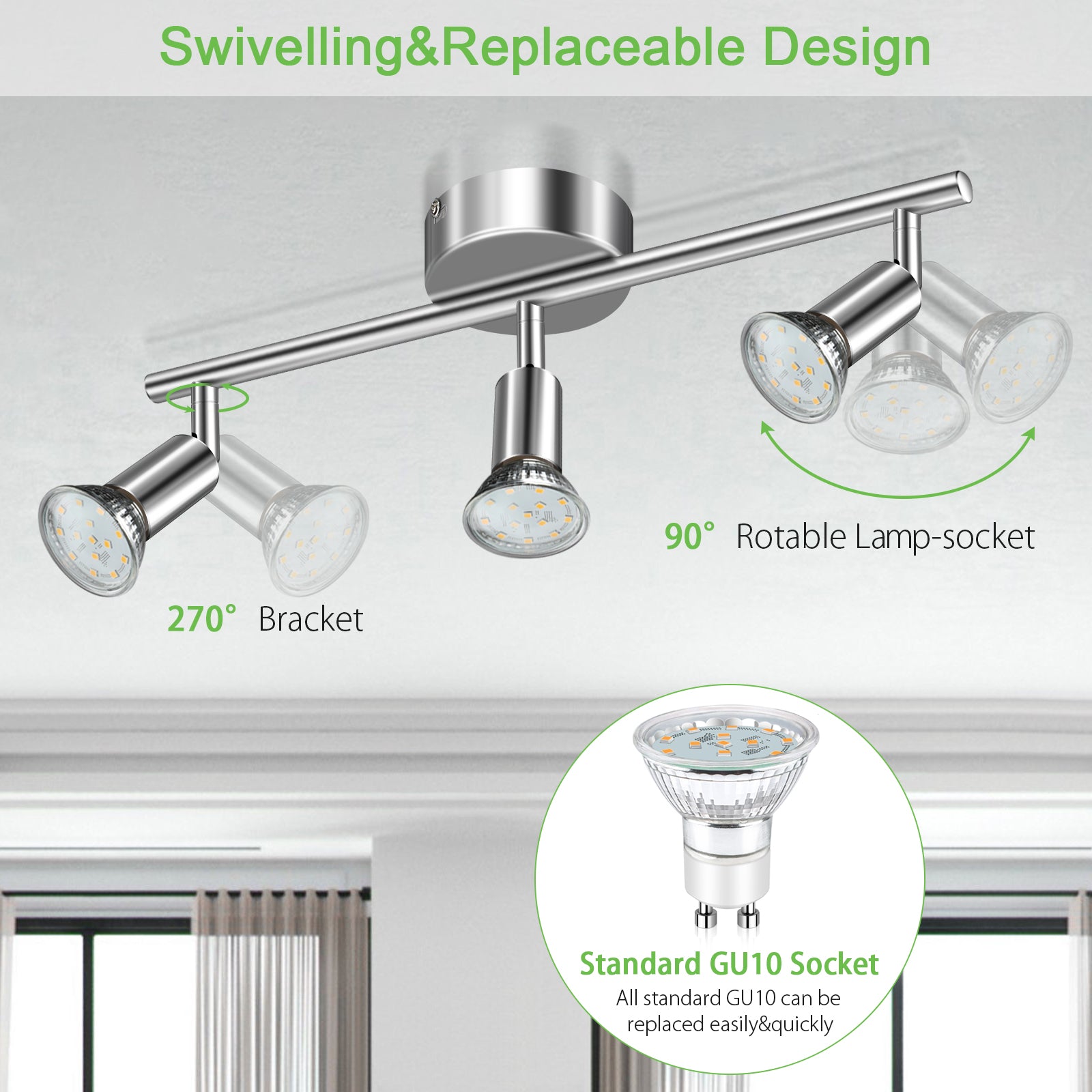 - Praktische Beleuchte: Der Mast der Deckenleuchte und die GU10 LED-Punkte können unabhängig voneinander gedreht werden, um den Winkel nach Belieben anzupassen