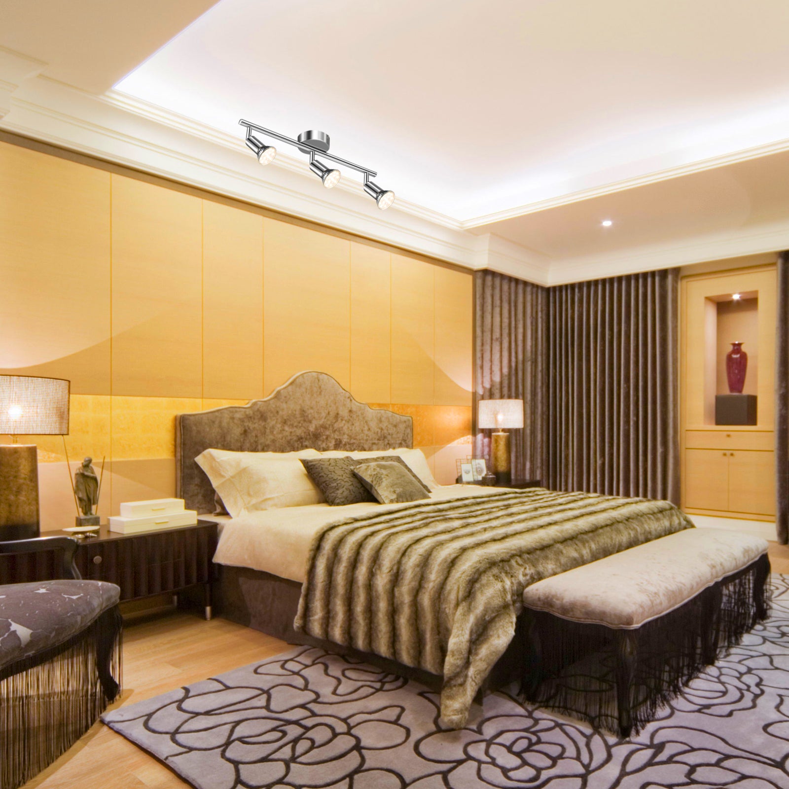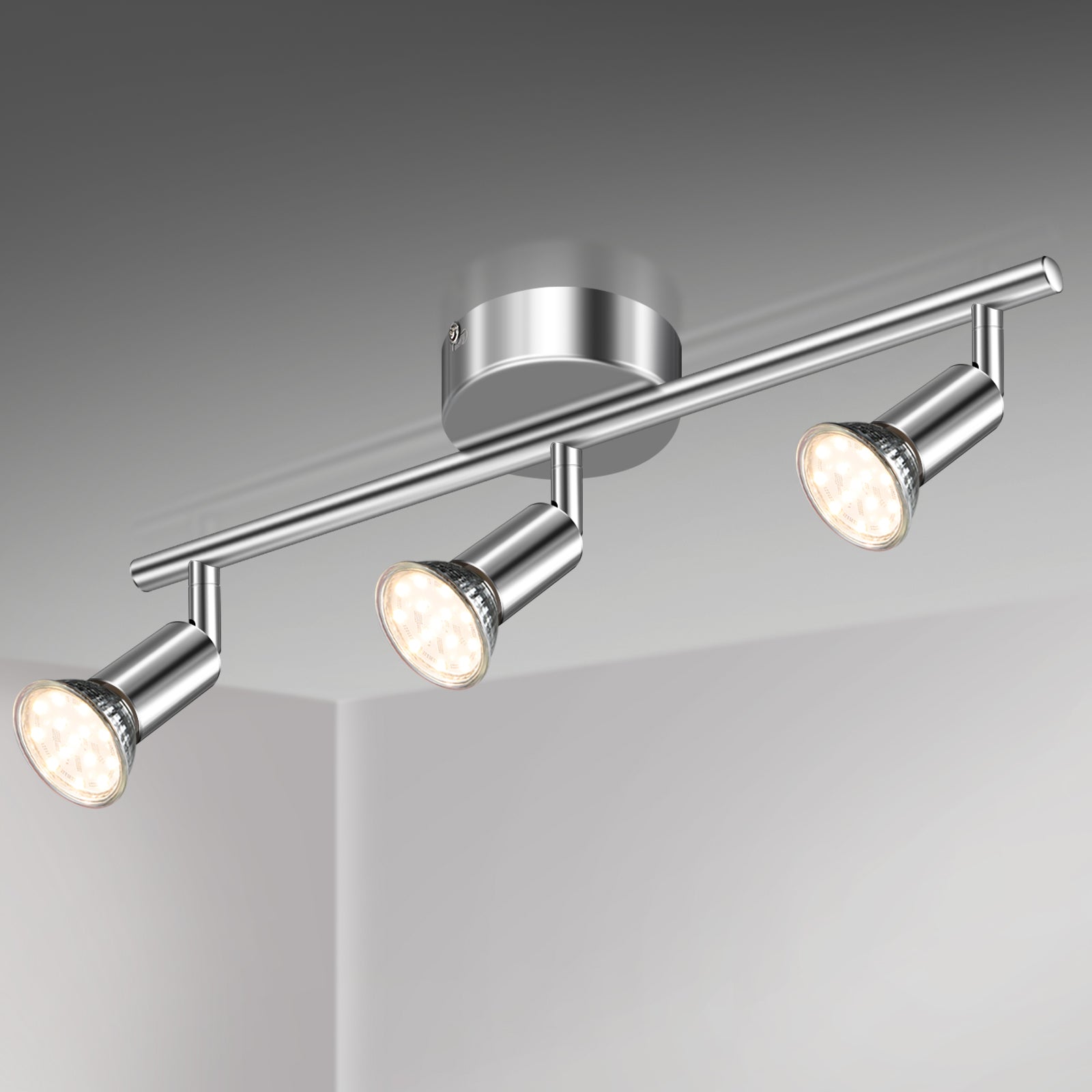 - Leuchtmittel enthaltend: Die Deckenleuchte ist mit 3 Fassungen GU10 ausgestattet. Bei der Lieferung sind 3 Leuchtmittel mit je 400 Lumen und 4 Watt inklusiv. Warmweißes Licht mit einer Farbtemperatur von 2900K.