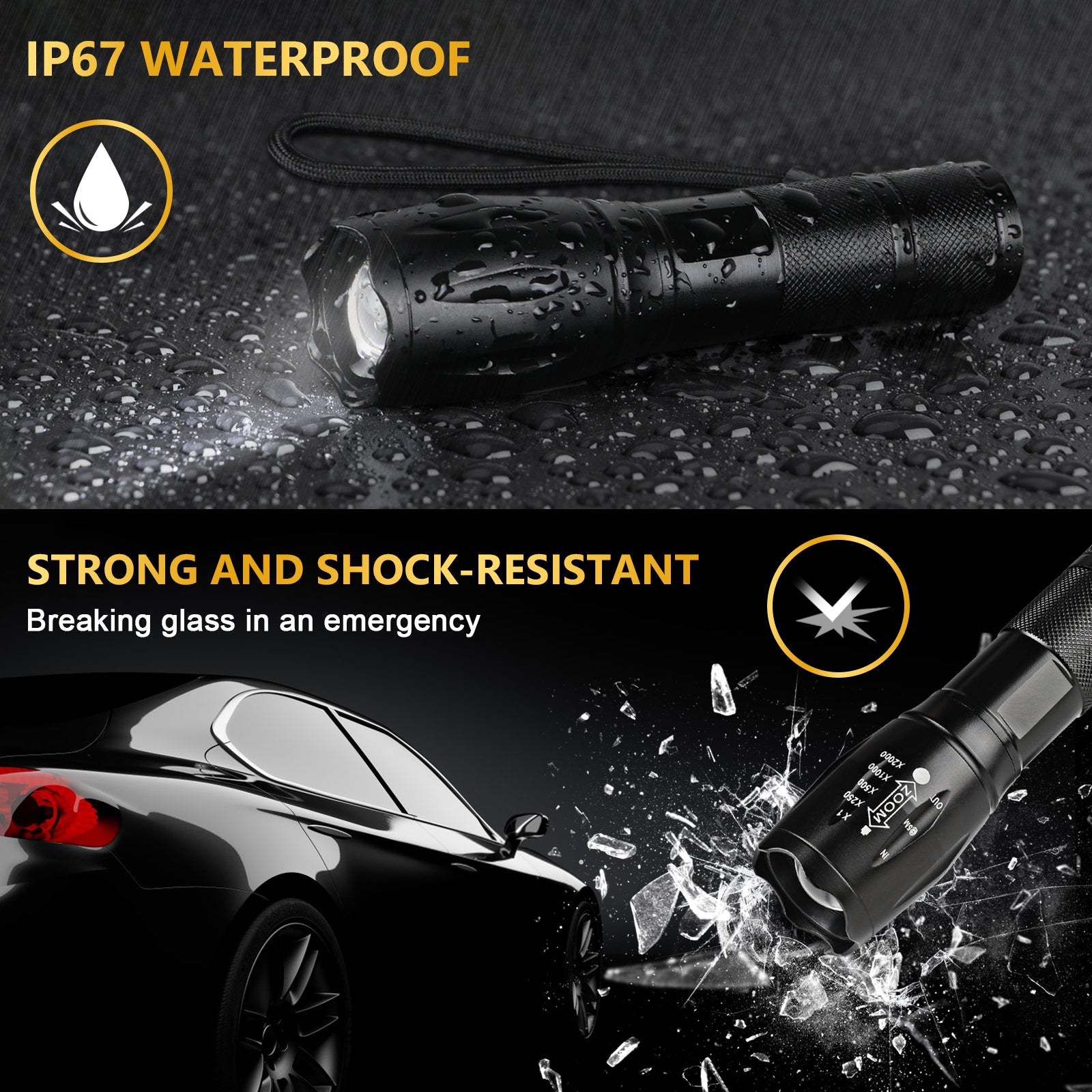 SuperDurable: The body of this flashlight is made of high-quality aluminum alloy. Strong enough and durable for long-term daily use. IP67 waterproof design for a better experience.